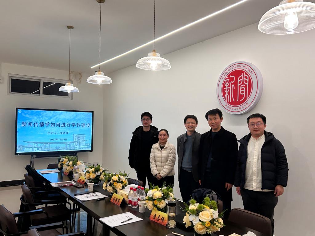 12月4日下午,南京财经大学新闻学院在德正楼503会议室举办“新闻传播学如何进行学科建设”主题讲座。南京师范大学学科建设处处长张晓锋教授受邀,就新闻传播学学科建设问题展开深入交流。本场讲座由我院副院长(主持工作)刘泱育老师主持,副院长肖璐老师、新闻系主任曹志伟老师、网媒系主任夏羿老师和研究生秘书李晞老师参加了本次讲座。
