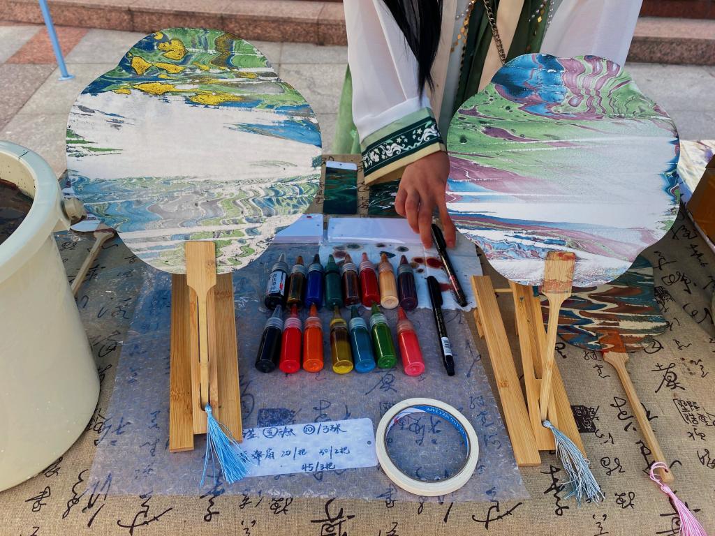 漆扇,是以扇子为载体,运用漆器工艺制作而成的艺术品。以漆为笔,以水为墨,进出之间,东方绝美色彩便在扇上翩翩起舞。4月27日下午,由新闻学院主办,鹿鸣汉服社承办的“漆扇DIY”活动在仙林校区中苑食堂门口举行。展现了流云变幻的中式美学,传承了瑰丽精湛的中华优秀传统文化。