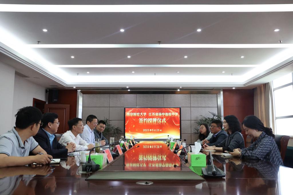 陈丹书记代表学校授予江苏省扬中高级中学“南京财经大学优质生源基地”铜牌