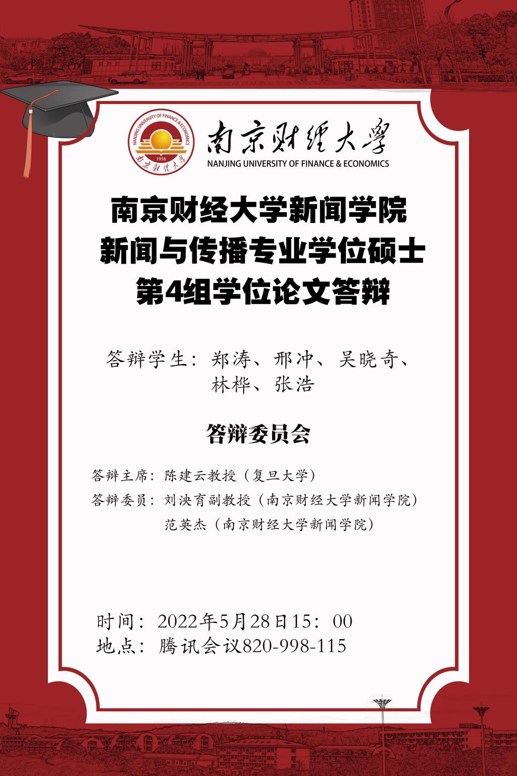 2022年新闻学院研究生论文答辩即将开始,本次预答辩采用学院分组、线上答辩的方式进行。请各位答辩学生做好准备。欢迎非毕业班研究生来旁听学习。具体时间安排见下图。